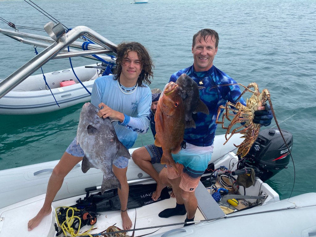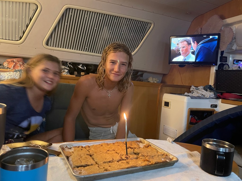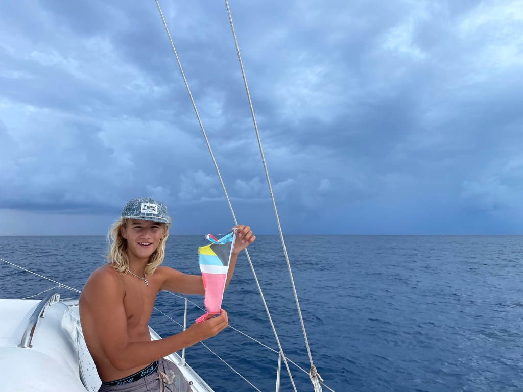 Arriving back in the Bimini channel felt heavenly! We felt a rush of excitement and contentment that we were BACK! We had our good friends on La Bella Vida that had arrived less than 24 hours before us and were so excited to see them after we checked in…party time! After Bimini we went to Chub Cay, what a gorgeous place. We had a blast here at the Naughty Rooster…love the karaoke and met lots of new friends. We got our 5 day covid test here, waited out some weather (this time of year its a LOT of waiting out blows, patience is key). We arrived in Nassau at the Palm Cay Marina on January 31. We were here too long…weather. The marina was expensive, the tide was crazy, we were docked at a fixed dock so getting off and on the boat was hard and the pool was still a bit too chilly to enjoy, I was ready to go! February 3rd we arrived at Big Major, more commonly known as Pig Beach, we played with the pigs, dove in Thunderball Grotto and then headed South. This trip we had our best fishing day of the trip! We hooked three mahi mahi at once and got them all in. A few minutes later we had a tuna on, we only got half of the tuna in but still got lots of good meat, a shark got the other half! February 8th we arrived HOME (haha) to Chat N Chill. So excited! Julia described it as the best place on earth. We met our good friends on Ptarmigan while here. Watched the Super bowl in town at the fish fry, Jett surfed a lot, we enjoyed many rum punches and it was time to move on . We left George Town February 11th. We hosted a fabulous Valentine’s brunch on the boat complete with lobster cakes hollandaise and then were off to explore Long Island. We rented one pickup truck and 6 adults rode inside and 7 kids rode in the back of the truck for over two hours! On February 16th we left for San Salvador, eww it was the roughest sail we’ve ever had. We had a BLAST in San Salvador. Its a different spot, the waters stunning but there isn’t much to do on land. There was a Club Med resort but because of covid it is closed. We traveled to San Salvador in 2016 and hired Patterson to be a fishing guide for the day, Derek and him have stayed in touch so we had our own welcome party and tour guide on the island. Due to a big blow we were here much longer than we’d expected. We left San Sal for the Crooked Islands February 24th around 9pm, it wasn’t planned but the weather was good and the bugs were kicking our boat so it was GO TIME! Man Crooked Island is stunning…we had a great time, my kids snagged tons of lobsters and life was good. We had nightly fires and just chilled. On March 3rd we left Crooked Island for the….